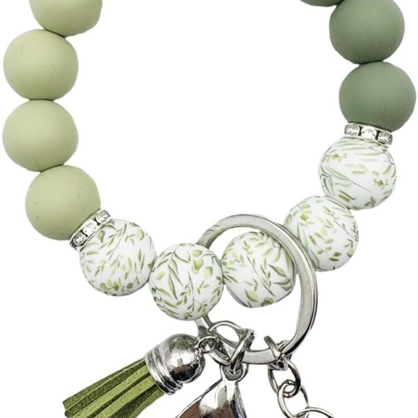 Silicone Bead Keychain Bracelet Women Wristlet Key Ring Bangle Chains with Tassel