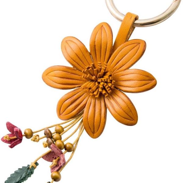 Genuine Leather Flower Tassel Keychain Car Keyring Fob Boho Accessorie for Women