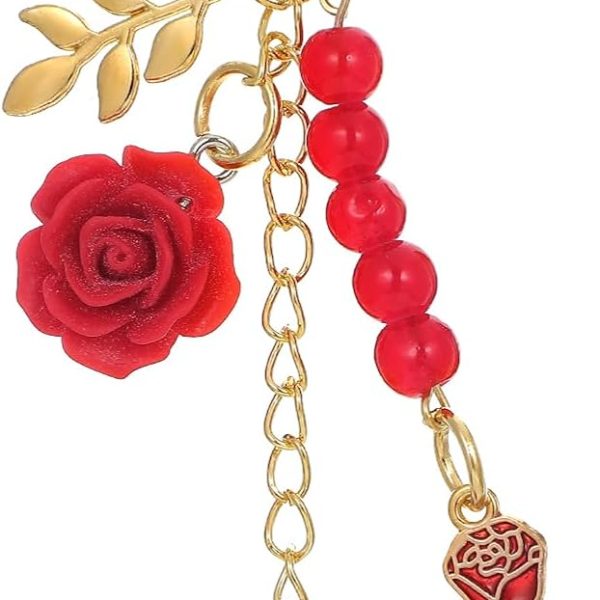 Rose Keychain, Flower Bag Charms Keychain with Tassel Chain Cute Red Rose Pendant Keyring for Handbags Bag Purse Wallet Cellphone Car