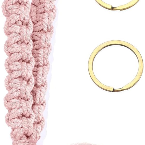 Keychain Wristlet, Woven Handmade Wrist Lanyard for Keys, Wrist Key Chains with 2 Keyrings for Women Car Keys ID Badges Card Wallet Phone, Pink